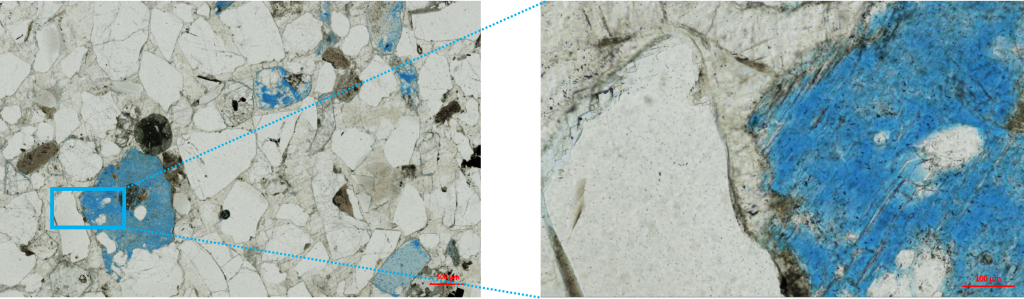 Su uso posibilita una mejor definición del efecto de los procesos diagenéticos sobre los reservorios de manera ágil y bien documentada. Además, permiten la cuantificación de la composición de granos, poros y cementos, tanto por conteo de puntos como por procesamiento de imágenes.